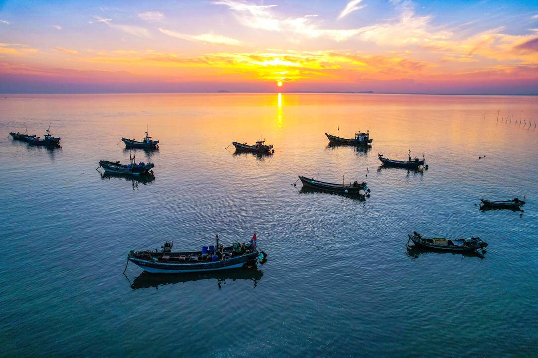 選定理由:夕日の金色の輝きが丹東大鹿島に優しく降り注ぐとき、絶景の海上日落がゆっくりと幕を開ける。澄み切った海面は自然の配色筆で思うままにぼかされたように、夕日の中心から迸る烈しい橙黄色が、次第に天際へと広がり、ピンク紫と深い青のグラデーションを暈していく。数艘の漁船がきらめく水面に静かに浮かび、船体と影は砕けた黄金のようなさざ波の中でゆらゆらと揺れ、詩情豊な符号が時間の中に切り取られたかのようだ。