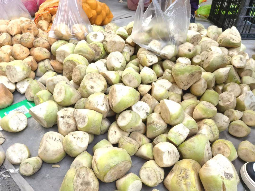 芥菜疙瘩(からしなの根):注意深く観察しなければ緑皮の大根と誤認され、多くの若年層は認識しないが、高齢者に好まれる秋野菜である。芥菜疙瘩は漬物や辛い漬け物製造における「核心的原料」なのである。