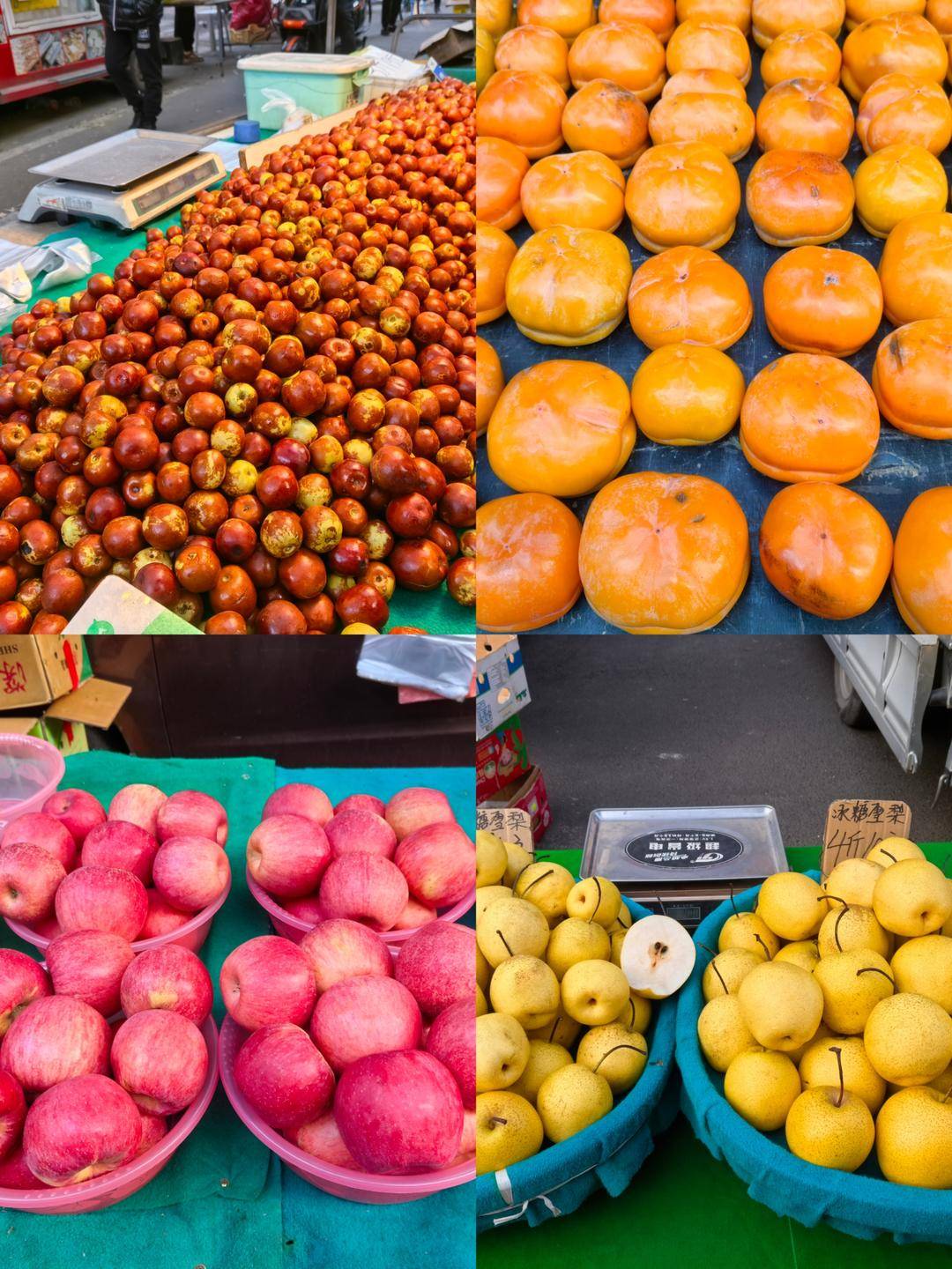真紅の瀋陽産「寒富」大りんごは、秋季に登場するや非常に圧倒的な存在感を示す。麻袋で包装されるか、洗面器に盛られて容器ごと販売される。廉価であるだけでなく美味である。りんご、南果梨、冬棗、柿は地場産果実の「王中王」であり、大粒で新鮮、価格が手頃な上、保存性に優れるという「冬儲属性」を備える。