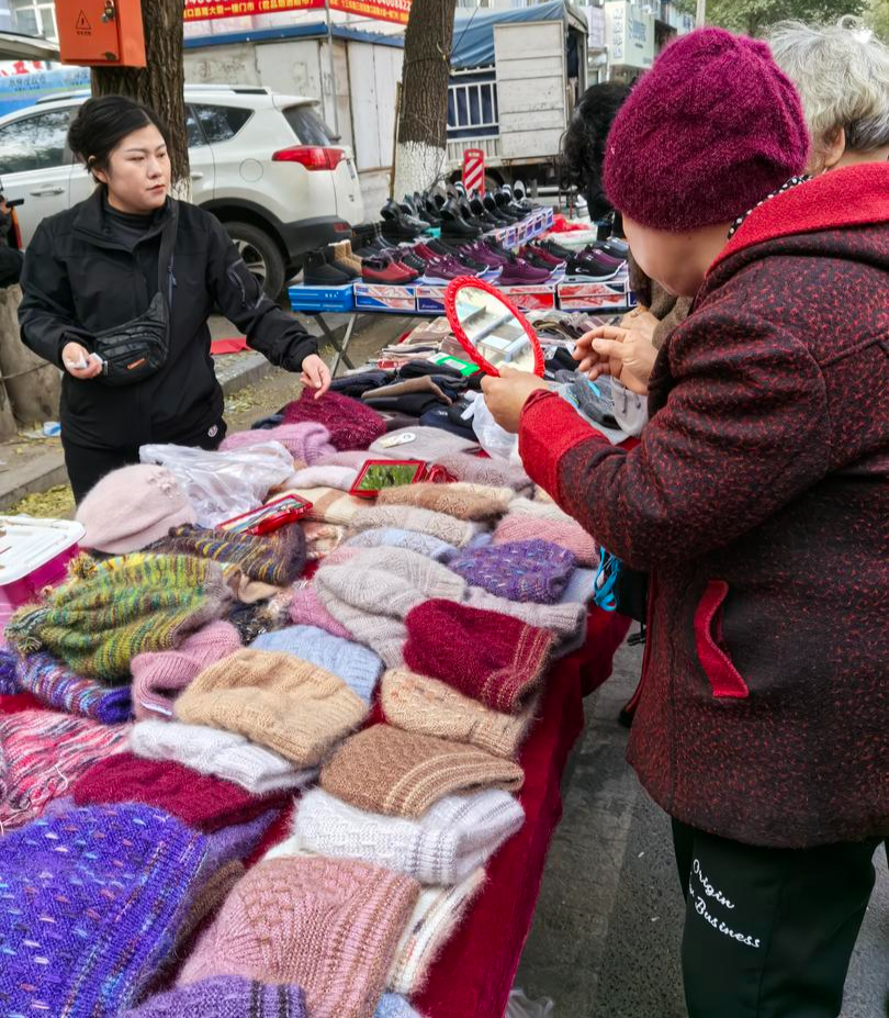 手袋が5元、帽子が10元、綿入れ上衣が30元、綿靴が50元。これらは全て朝市の露店商品である。製造工程は精巧とは言い難いが、非常に人気が高い。多くの地方からの観光客が特に朝市でこれらの露店商品を購入することを好み、100元余りで頭部から足元まで完全に防寒装備が整えられる。初冬の街路を歩いても全く寒冷を感じず、更に「掘り出し物」を入手した喜びを享受できるのである。