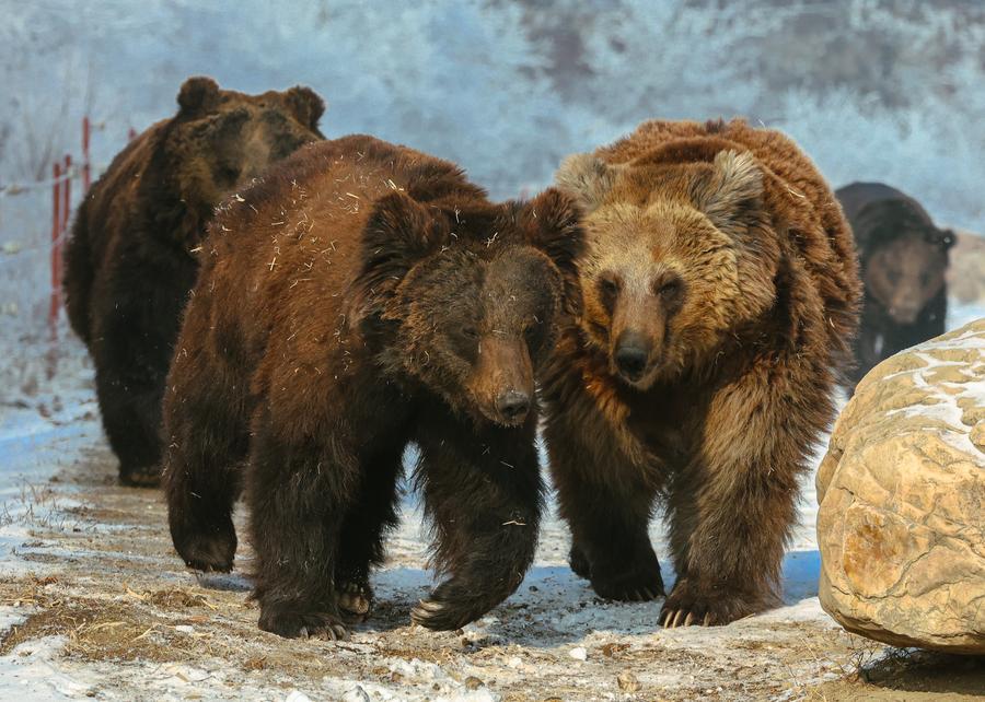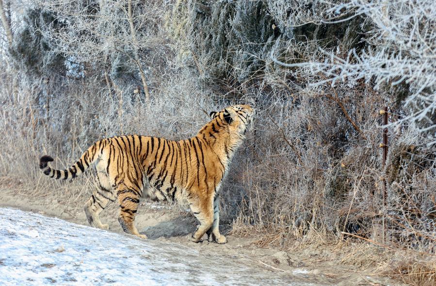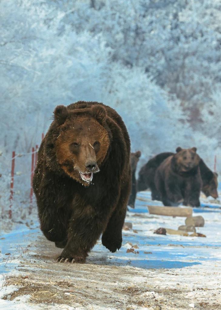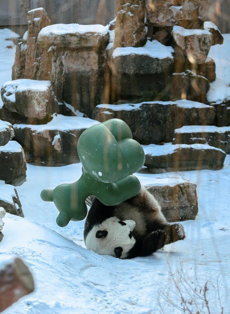 中国遼寧省の瀋陽森林動物園では大雪の後、銀世界で一層元気に活動する動物たちの姿が見られた。