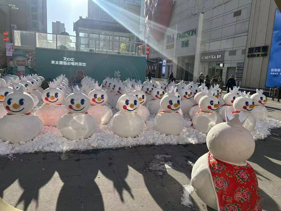 ぽっちゃりとした雪だるま軍団が整列し、この活気ある歩行者天国で「最も可愛いフォトスポット」に変身。散歩する地元の方々、買い物に来た若者、記念撮影に訪れた観光客たちは、思わず足を止めて一緒に写真を撮り、雪だるま軍団に「雪王」(スノーキング)というたくましいあだ名まで付けた。