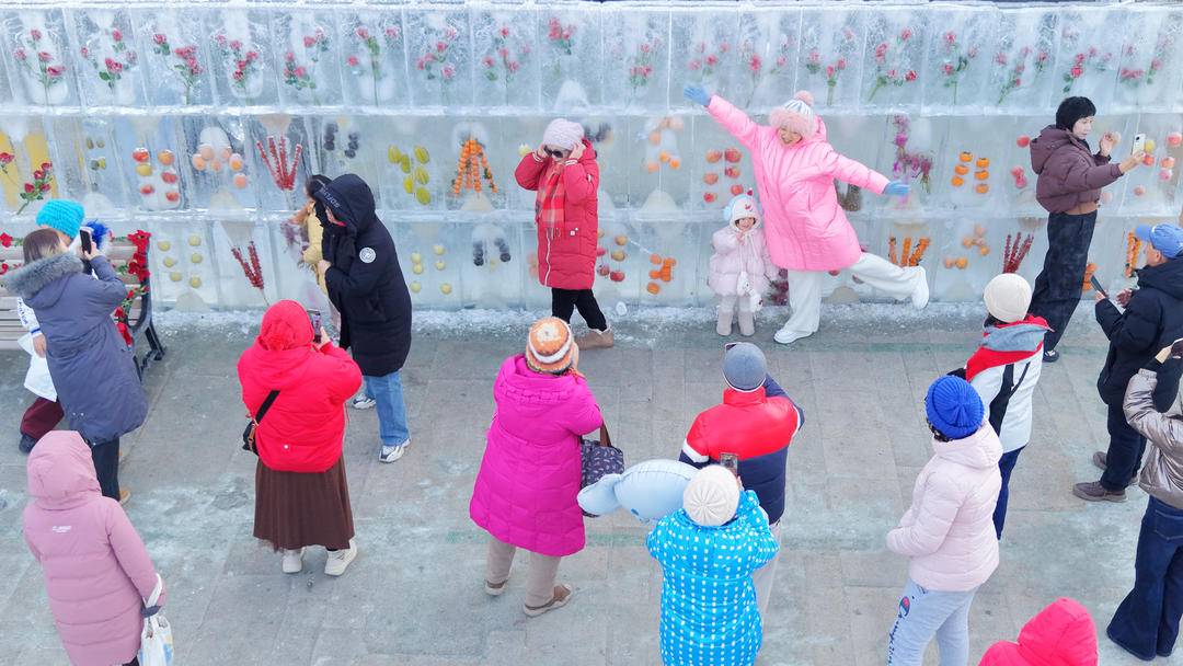 1月6日、瀋陽渾河外灘市集では、観光客が雪と氷の宴に没入し、冬のロマンと喜びを体感していた。数十メートルに及ぶ氷のフルーツウォールには凍り梨やオレンジなどのサプライズが隠れ、氷のバラウォールは自然とフィルターがかかったような美しさで、スマホで撮ればそのままSNS映えする一枚に。多くの観光客が訪れ、記念撮影を楽しんでいる。