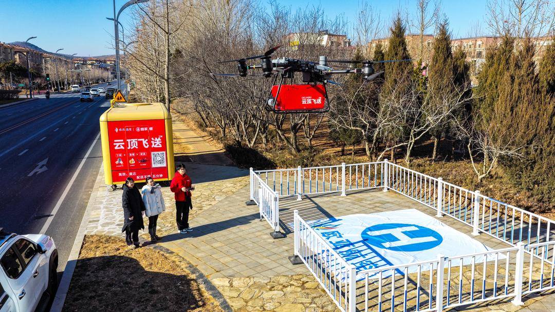 このほど、大連市初のドローンによる日常的な出前配送路線が金石灘地区で正式に開通・運用を開始した。周辺大学の学生は、WeChatのミニアプリで注文するだけで、ドローンが注文品を迅速にキャンパス内の受け取りポイントまで配送する。