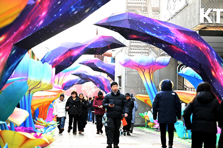 午年の春節が近づくにつれ、中央通り方城観光エリアでは故宮周辺にさまざまな色とりどりの灯りや特色ある景観を丹念に設置している。
