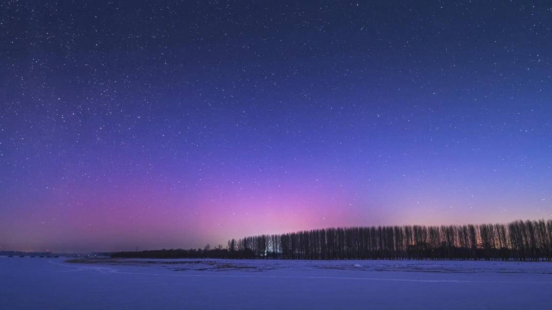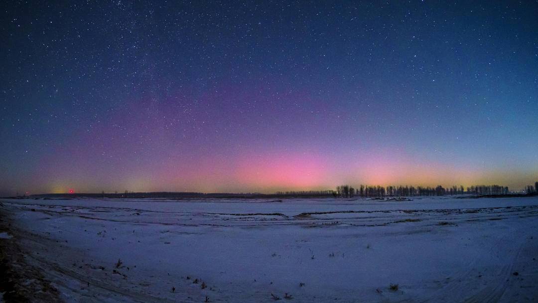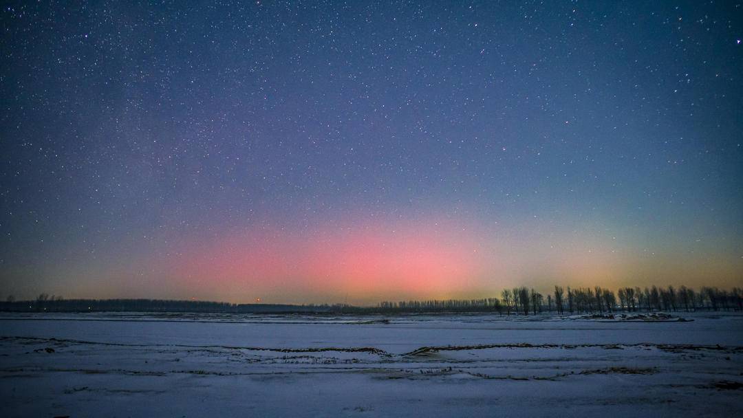 大寒の節気を迎えた1月20日夜、大規模な地磁気嵐の影響により、中国各地でオーロラショーが観測された。瀋陽市沈北新区の七星山、遼河流域上空でも、オーロラの美しい光景が現れた。夜空の下、淡い赤や薄紫の色が織りなす光の帯がゆったりと空を舞い、凍りついた遼河や雪化粧をまとった山肌と趣あるコントラストを描き、夢のように幻想的な光景を作り出していた。