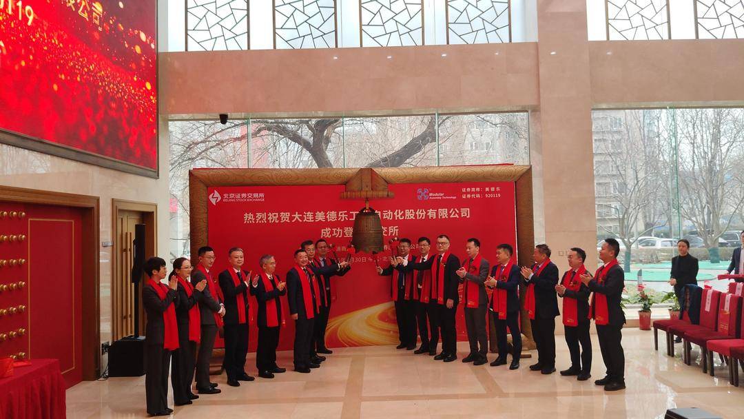 このほど、澄んだ余韻のある鐘の音とともに、大連美德楽工業自動化股份有限公司が北京証券取引所への上場を正式に果たした。遼寧省において今年初の上場企業として、美德楽は新三板(全国中小企業株譲渡システム)登録から北京証券取引所上場に至るまでの一連のプロセスを成功裏に歩み通した。
