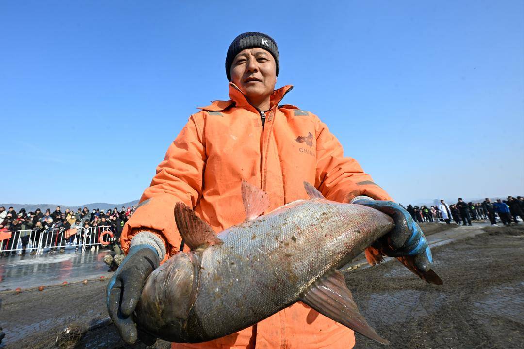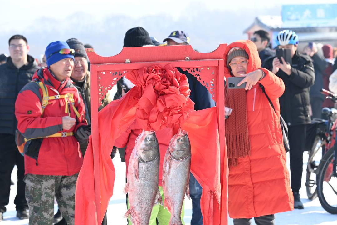 朝もやが秀湖の氷面に降り注ぐ中、「魚把头(漁の頭領)」が伝統衣装を身にまとい、百年の歴史を持つ「祭湖辞(湖を祭る詞)」を朗誦。天地を敬い、湖の恵みに感謝する九拝の礼を行い、五穀を撒き、白酒を捧げるなど、古式ゆかしい儀式で自然の贈り物に敬意を表した。続いて、一同で網を起こすと、巨大な網は長龍のように氷の底へと沈んでいった。網上げの合図が氷原に響き渡り、ウィンチが轟音を立てる中、数十人の男たちが心を一つに網を引き上げると、無数の鮮魚が砕氷を纏って氷穴から躍り出た。