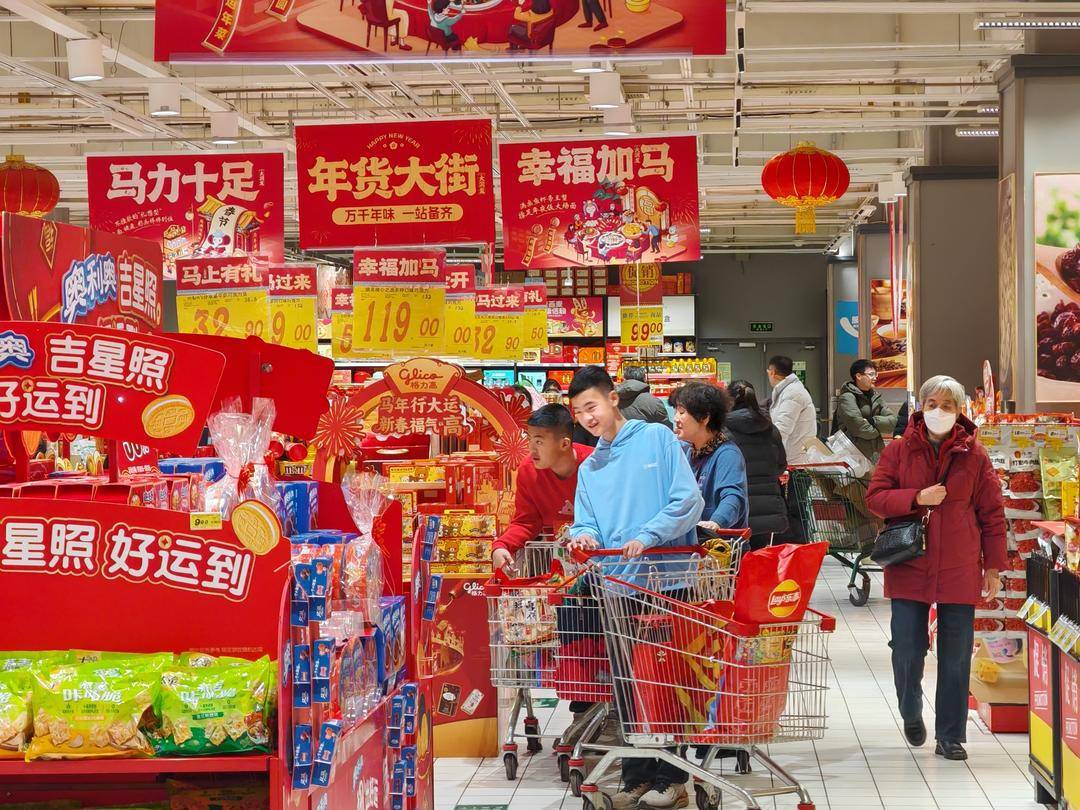 多くの市民が買い物カートを押しながら心を込めて品選びをし、団らんの食事の準備を進めている。スーパーの責任者によると、今年の正月商品の種類は例年より豊富で、伝統的な商品に加え、多くの健康的で革新的な品目も追加されているという。市場に湧き立つ購買意欲と、山と積まれた商品が互いに映え、生き生きと温かい春迎えの光景を描き出している。中国の正月は、春の気配と繁栄の賑わいを携えて、一歩一歩近づいている。