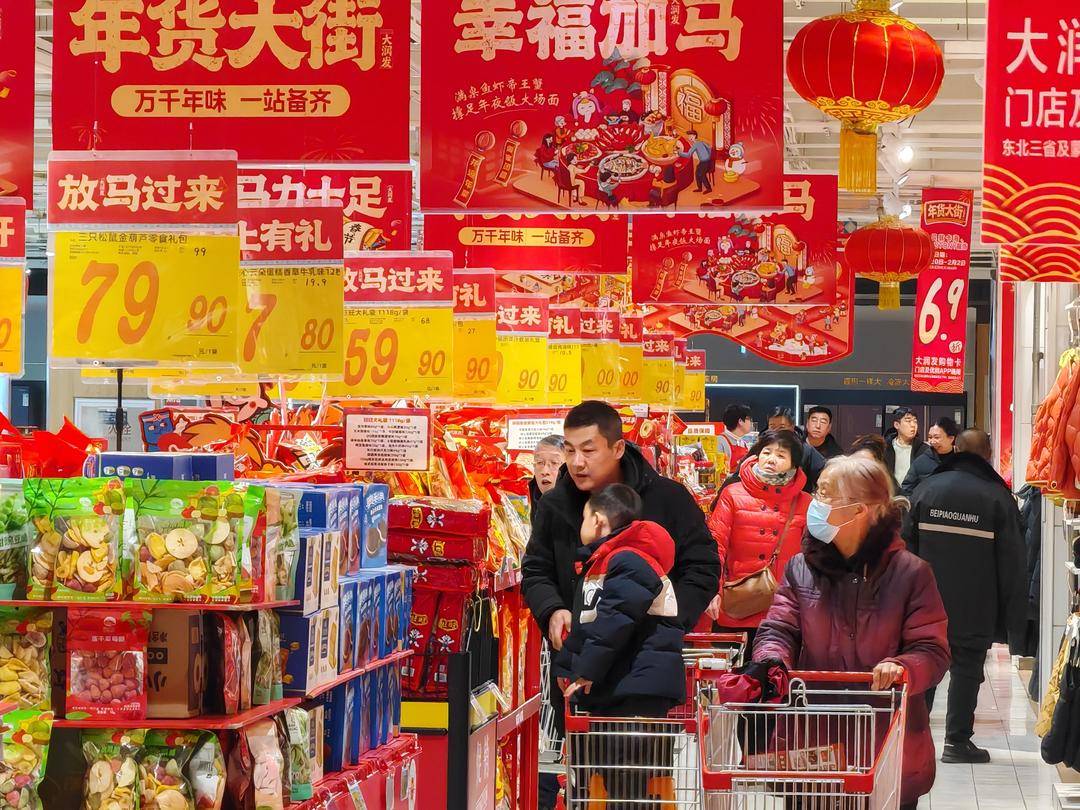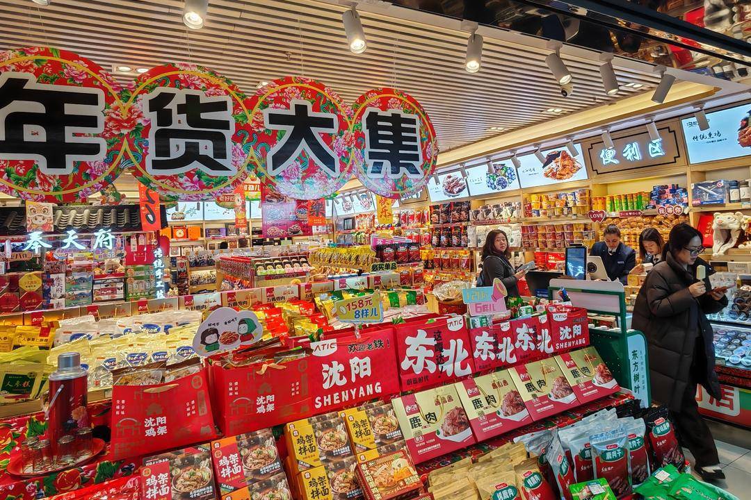 旧暦の立春を迎え、瀋陽の街にはすでにお正月の気配が満ちている。市内の多くのスーパーや商店では、米・麺類・油・穀物、生鮮魚肉などの生活必需商品が十分に供給され、様々な正月用ギフト箱、酒類、菓子類が目立つ場所を占め、棚を溢れんばかりに彩っている。吉祥と喜びを象徴する赤が主調色となっており――包装が精巧な菓子のギフト箱であれ、「年年有余(年々余裕がある)」という意味を持つシーフードセットであれ、どれも濃厚な正月気分を漂わせている。