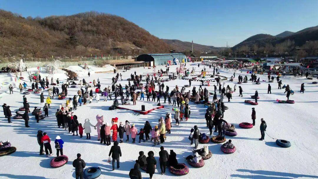 冬の老院子で最も賑わうのは、間違いなく雪と氷の楽園だ。「冬休み期間は雪遊びが最も人気で、毎日千人以上の観光客が氷や雪を楽しみに訪れます!」王蕊の案内で園内に入ると、笑い声と歓声がすぐに人を包み込む。雪チューブが勢いよく滑り降りて雪煙を上げ、スノーモービルの爆音が冬の激情に火をつける。スノーバイクや氷上そりなどの遊具の前では、大人も子どもも一緒に集まり、追いかけっこしてはしゃぎ合う。隣接するスキー場には、400メートルの中級コースと2本の200メートル初級コースがあり、「500組以上の新品スキー用具を特別に準備し、20人以上の専門コーチを配置しました。初心者から経験者まで、存分にお楽しみいただけます」と王蕊が補足する。景区ではナイタースキーも実施しており、ライトアップ時の雰囲気は最高潮に達し、若者から特に好評だ。
