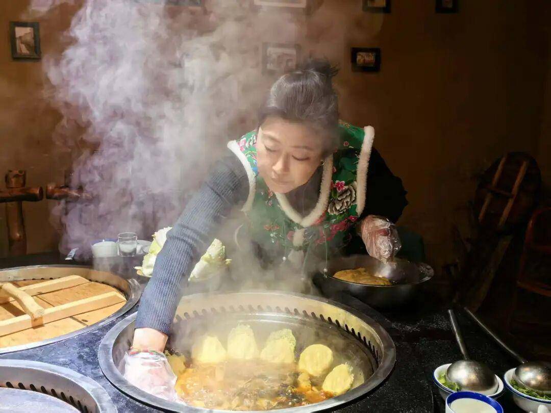正午になると、陽光がポカポカと庭園に降り注ぎ、老院子の生活の息吹も頂点に達する。「紅房子鉄鍋炖(赤い家の鉄鍋煮込み)」のかまどの火は旺盛で温もりが立ち上り、鉄鍋がぐつぐつと音を立てる。大きな頭の魚と豆腐の煮込みは驚くほど鮮烈で、鶏肉とキノコの煮込みは豊かな香りを放ち、立ち込める湯気が美味しさを告げる。蝉の羽のように薄い春餅が定刻に食卓に並び、新鮮な野菜を巻き込むと儀式感が満たされる。中華レストランエリアの「鍋包肉(甘酢豚肉)」「川エビの揚げ物」、羊スープ専門店の熱々の羊スープ、小吃街の南北の美食と、豊富な品ぞろえが観光客の食欲を満たし、舌先で鞍山の温もりを感じさせる。