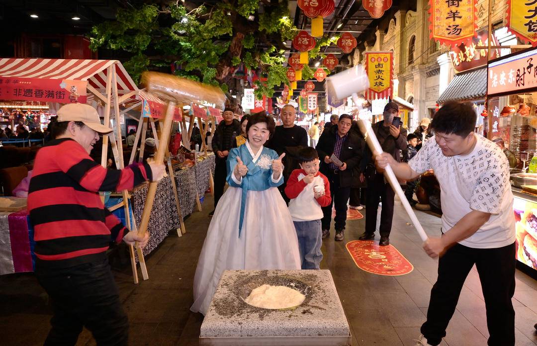 会場では、無形文化遺産の美食ブースが一列に並び、良い香りがあたりに漂っていた。朝鮮族の餅つきの音があちこちで響き渡り、継承者が手作業での餅つき技術を実演すると、出来立てのもちもちで甘い餅たちは即座に売り切れた。