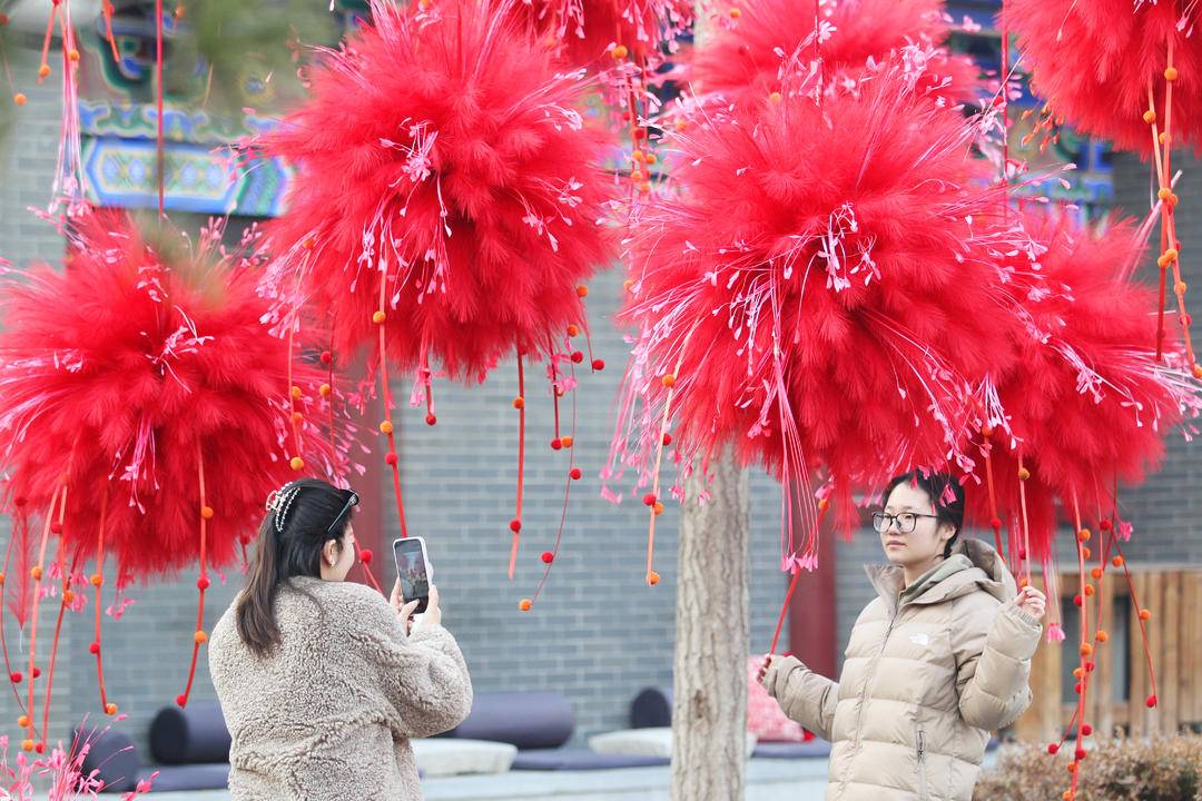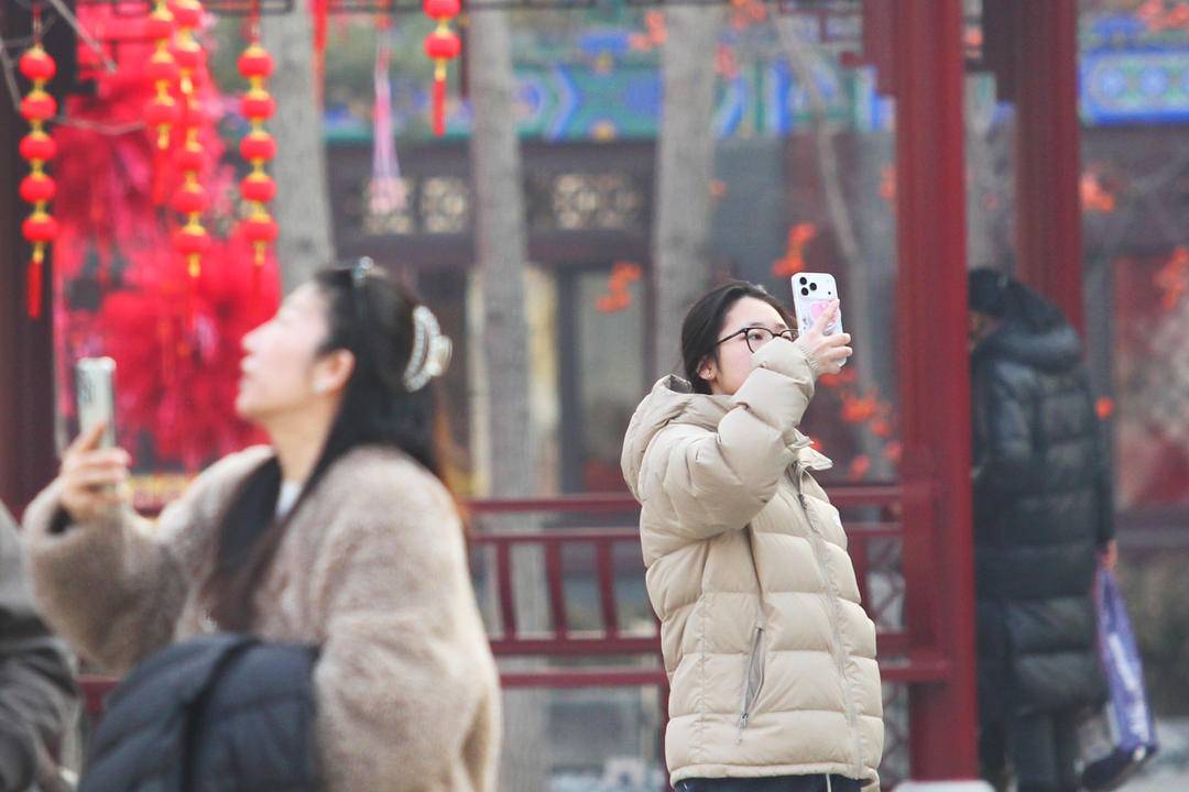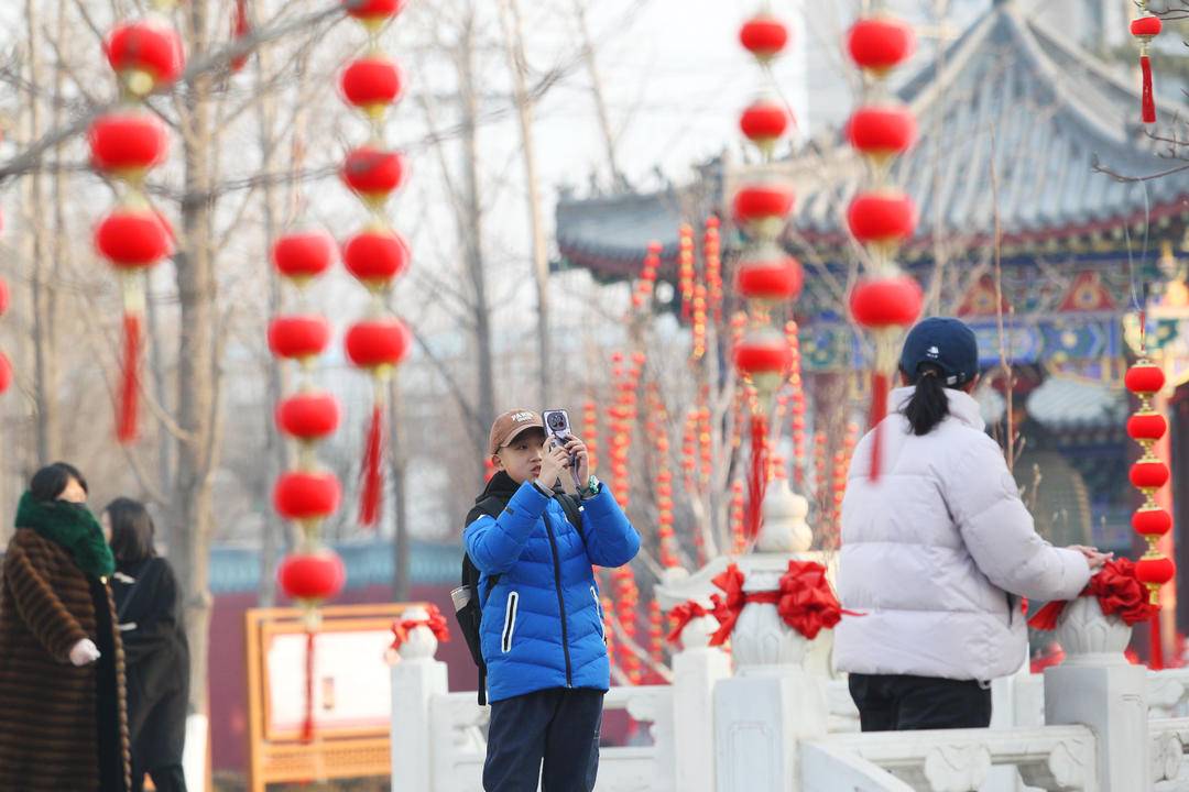 真っ赤な提灯が高々と掲げられ、色鮮やかな花火を象った飾り球が枝という枝にたわわに実る。朱塗りの古びた壁には紅梅が映え、枝には柿の実が「事事如意(すべてが思いのまま)」を象徴するようにたわわに実る。新春の雰囲気は、そこかしこに満ちあふれている。瀋陽の東塔公園は、慶びを告げる赤を基調とした装いで、最も濃い新春ムードを描き出している。一歩進むごとに広がる景色すべてが絵画のようで、手軽に撮った一枚までもが新春の絶景となる、春節のムードを存分に味わえる格好の撮影スポットだ。