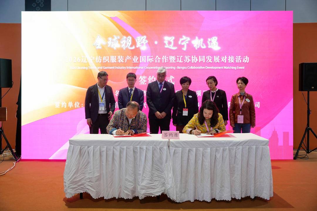 マッチングイベントでは、遼寧省紡織ファッション協会が本省の産業優位性と協力意向について主旨紹介を行い、大連、丹東、遼陽がそれぞれ産業エコシステム、特色ある優位性、転換・高度化についてテーマ別に紹介した。会場では調印式が行われ、丹東市工業情報化局と江蘇蘇豪中天、興城水着産業クラスターと江蘇蘇豪雲商などが5件の協力協定に調印し、協力合意に達した。