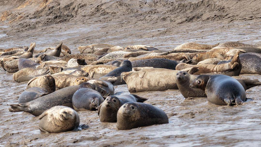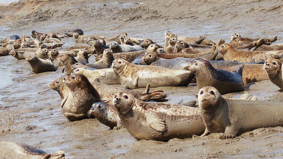 3月16日、遼河河口の氷がまだ完全には解けていない中、約200匹の国家一級保護動物である西太平洋ゴマフアザラシ(別名、遼東湾ゴマフアザラシ)がのんびりと日光浴を楽しんでいる!どのアザラシもまるまると太り、愛らしい表情で、悠然と遼東湾の春の暖かな日差しを満喫していた。