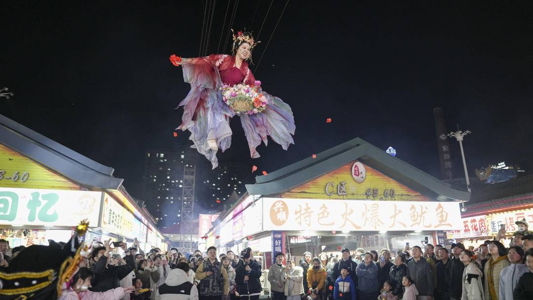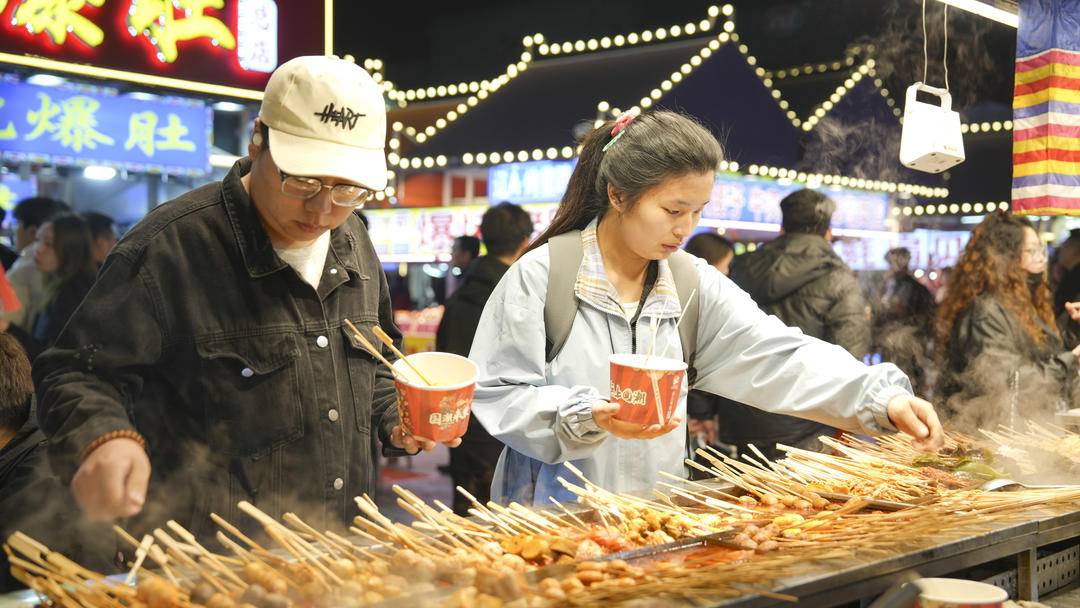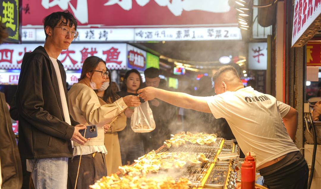 夜のとばりが下りると、夜市内には様々なグルメの屋台がずらりと並び、焼き鳥、軽食、スイーツなど百種類以上の特色ある料理の香りが漂う。また、夜市では見事なパフォーマンスも披露され、来場者は美食を楽しみながら立ち止まって演目を鑑賞し、夜の消費の楽しさを没入感たっぷりに味わった。