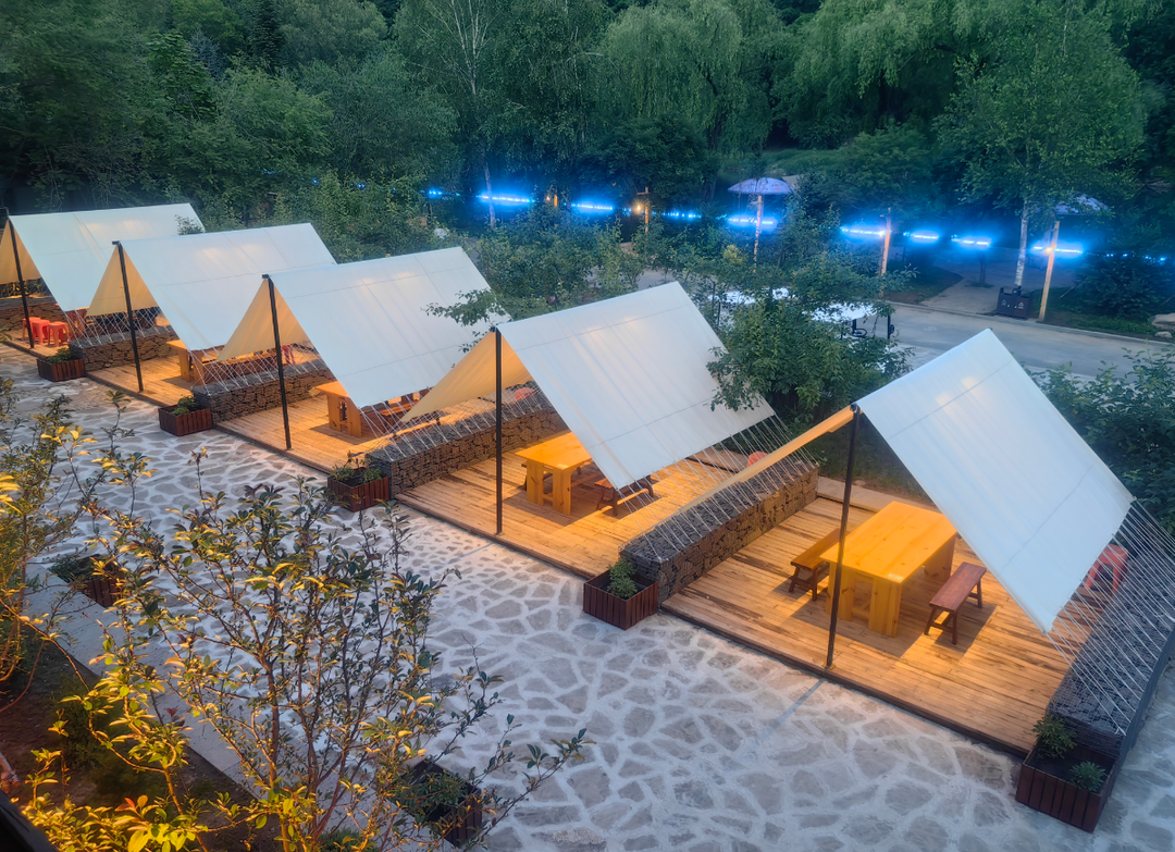 37室の独立した客室と2000平方メートルの広々としたキャンプエリアを有し、全体は丸太構造を基調とし、満州族の伝統的要素とモダンでシンプルなデザインを完璧に調和させている。地域性と自然の質感を兼ね備え、静かで快適な山里リゾートの雰囲気を醸し出している。