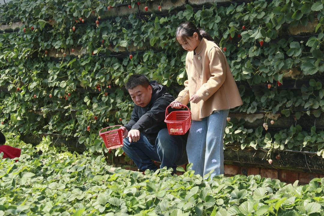 イチゴ狩り産業を強化するため、「張生態栽培基地」は絶えず設備を更新し、現在では30以上の温室ハウスを完成させている。品種ごとに専用のハウスで栽培し、全工程を通じて自然な温度管理と有機栽培方式を採用。催熟剤や農薬を使用せず、品質が良く、甘みのあるイチゴを確保しており、市民から高い支持を得ている。基地は「党組織+協会+農家」のモデルを活用し、周辺農家を栽培管理に参加させ、農家の安定的な収入増加を促進。小さなイチゴを「富民の果実」に変え、農村の農業・観光発展と春の経済に活力を注いでいる。