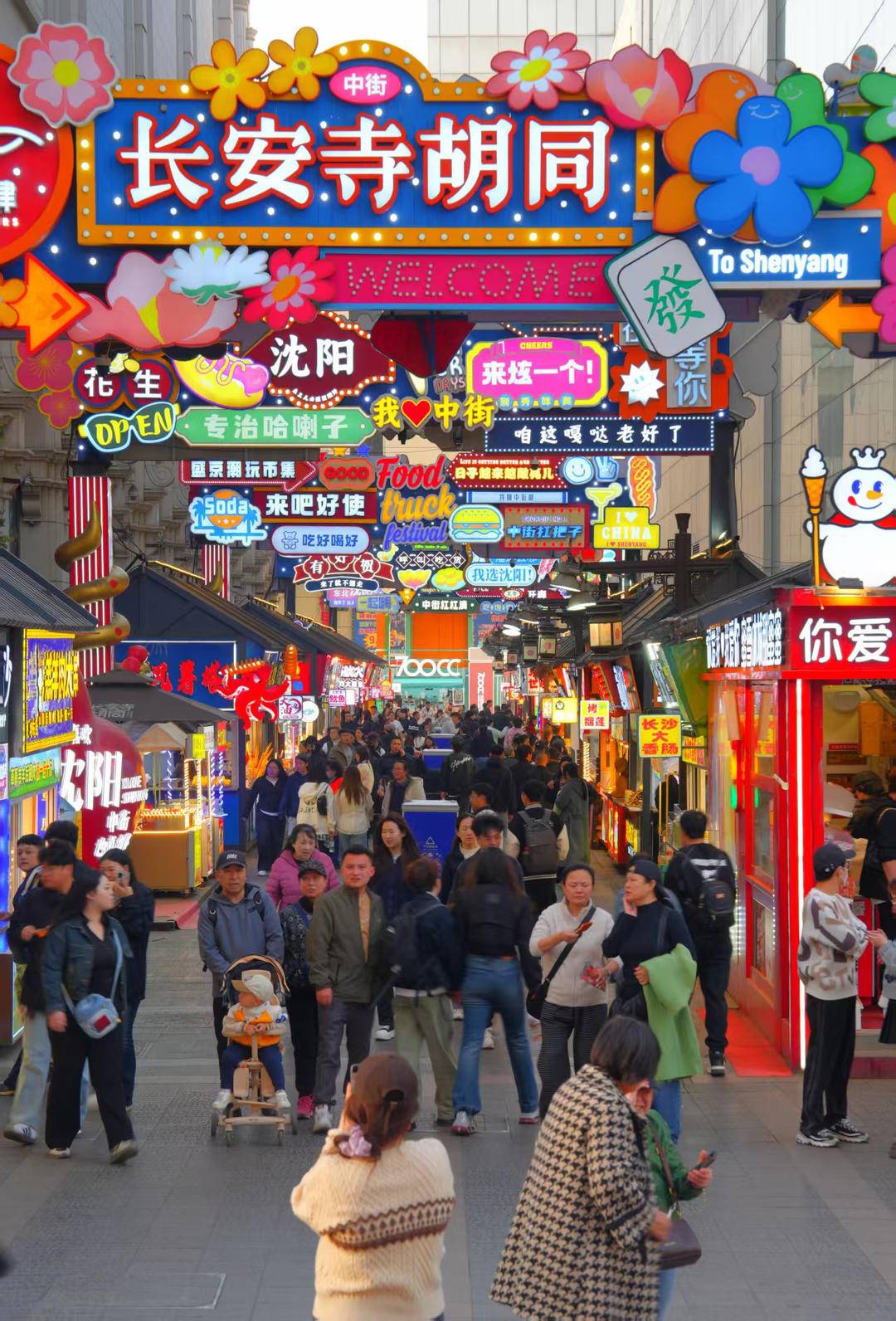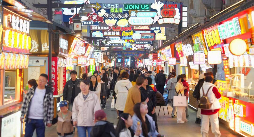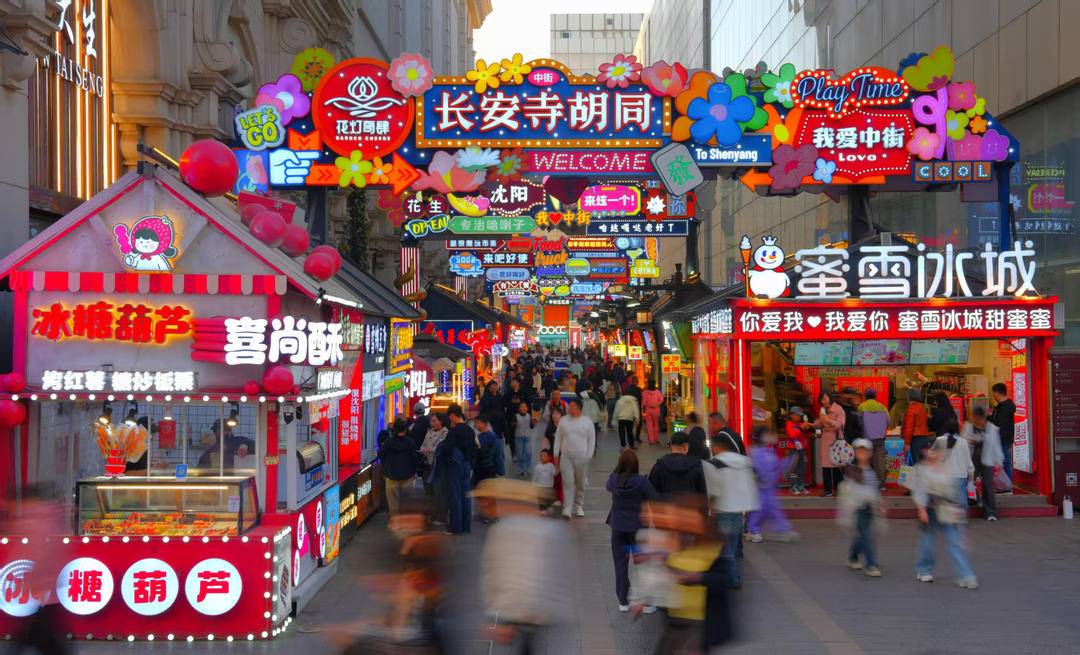 夕暮れが訪れると、春の瀋陽・中街商業圏はネオンがきらめく。気温の上昇に伴い、各ショッピングモールのセールは熱気を帯び、特色ある市集(マーケット)の人出も増え続けている。多様な消費シーンから活力が溢れ出し、百年の歴史を持つこの商店街の春の夜間経済の旺盛な人気を如実に示している。